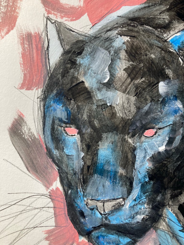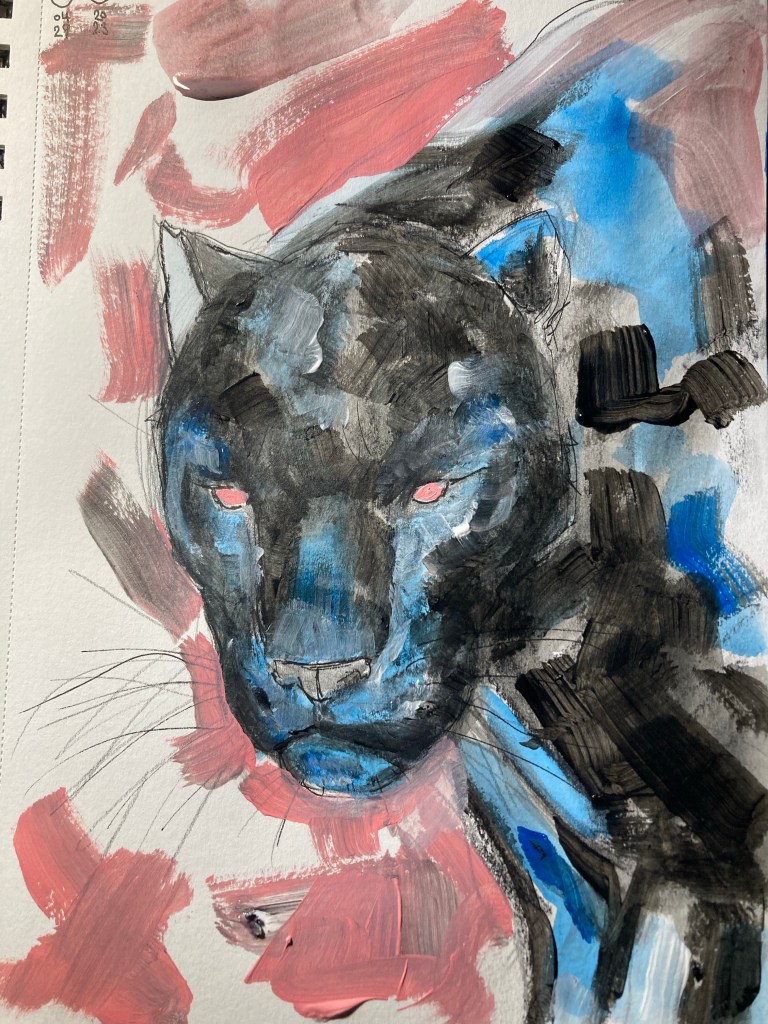 Locking in, befriending the beast. Dead set the scent thats sweet. Laser focused melanin leopard. Mf Doom type beat. About 45 mins or so for this one, it’s ugly but I’m my favourite way. Feels like the perfect combination of the best and worst aspects of myself. Perfectly flawed. I like the play of light along the back especially. Fond of the eyes
