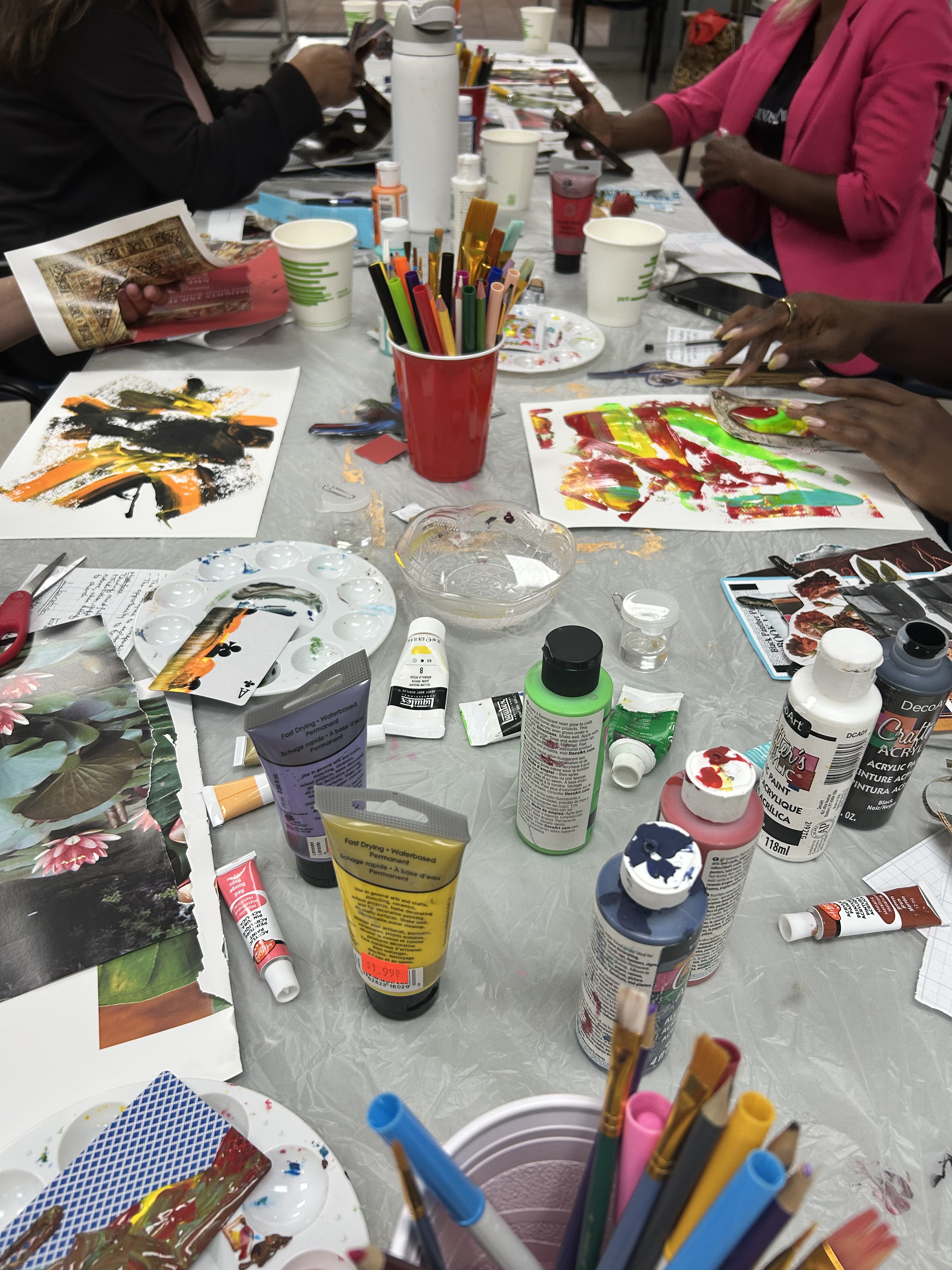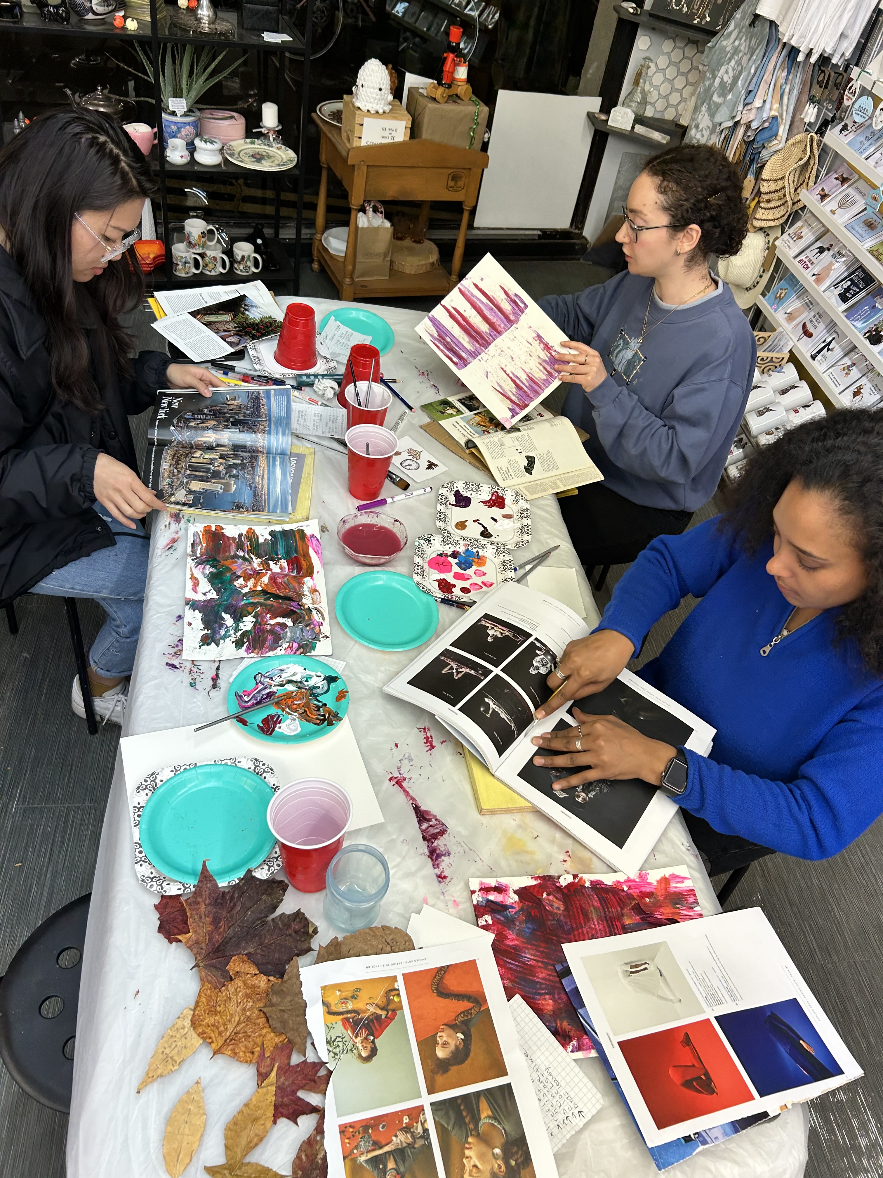 These workshops include writing prompts, illustration tips, abstract techniques, and collaging guidance. Each step is designed to engage different levels of creativity and foster an inner dialogue to strengthen our connection with ourselves.