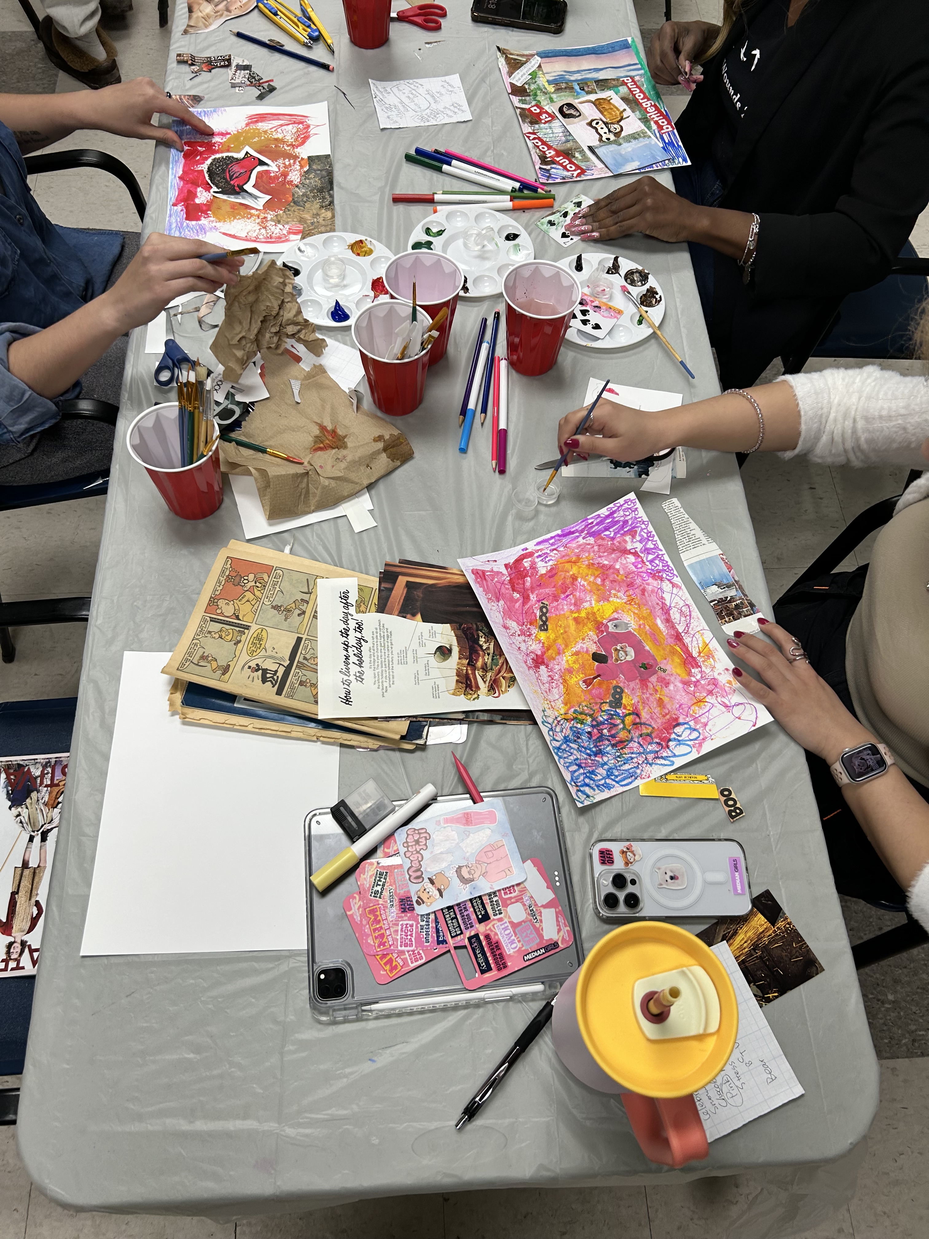 Craft it Out is a multimedia collaging workshop created by Otis that focuses on building community and connections within ourselves and others.